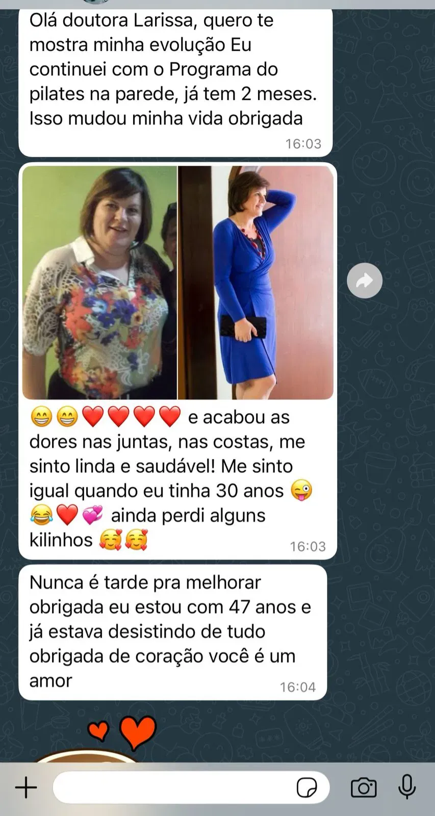 A boa notícia é que ainda não é tarde para mudar! Com apenas 10 minutos por dia, você pode restaurar sua postura, aliviar dores, fortalecer seu corpo e até rejuvenescer sua pele, graças ao aumento da circulação e oxigenação. Com o Programa Pilates na Parede, você sentirá mais leveza, flexibilidade e disposição, sem precisar sair de casa ou investir em equipamentos caros.